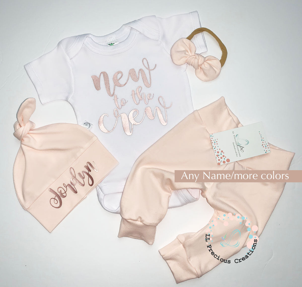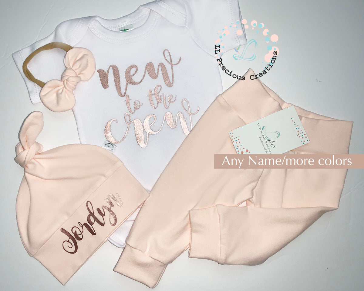 Personalized Baby Girl Coming Home Outfit New to the Crew Any Solid Color