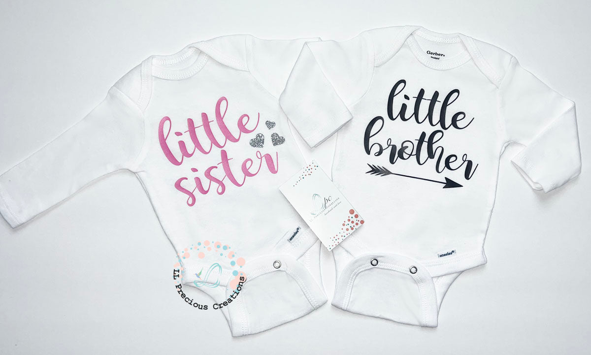 Matching little brother/sister baby outfits are perfect as baby coming home outfits or baby shower gift.